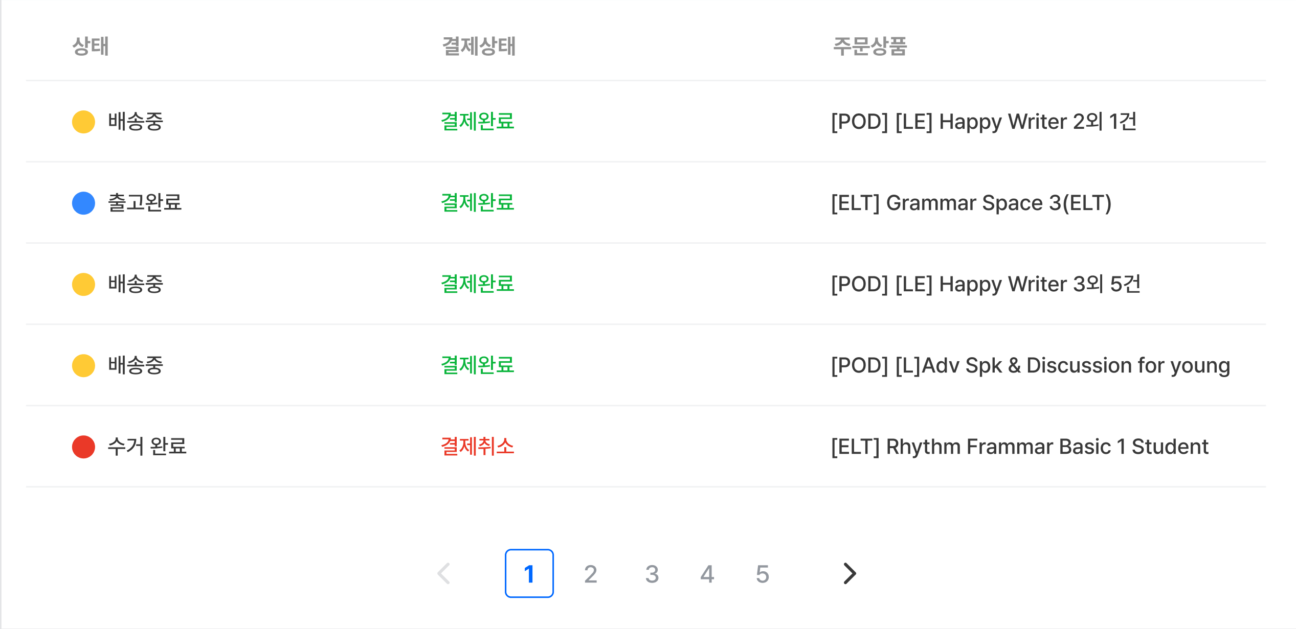 구매한 상품의 주문상태는 다음과 같이 분류됩니다.